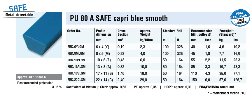 - PU 80 A SAFE capri blue : 김속검출기용 라운드벨트, 식품과 직접 닿는 곳에 적용이 가능한 벨트
